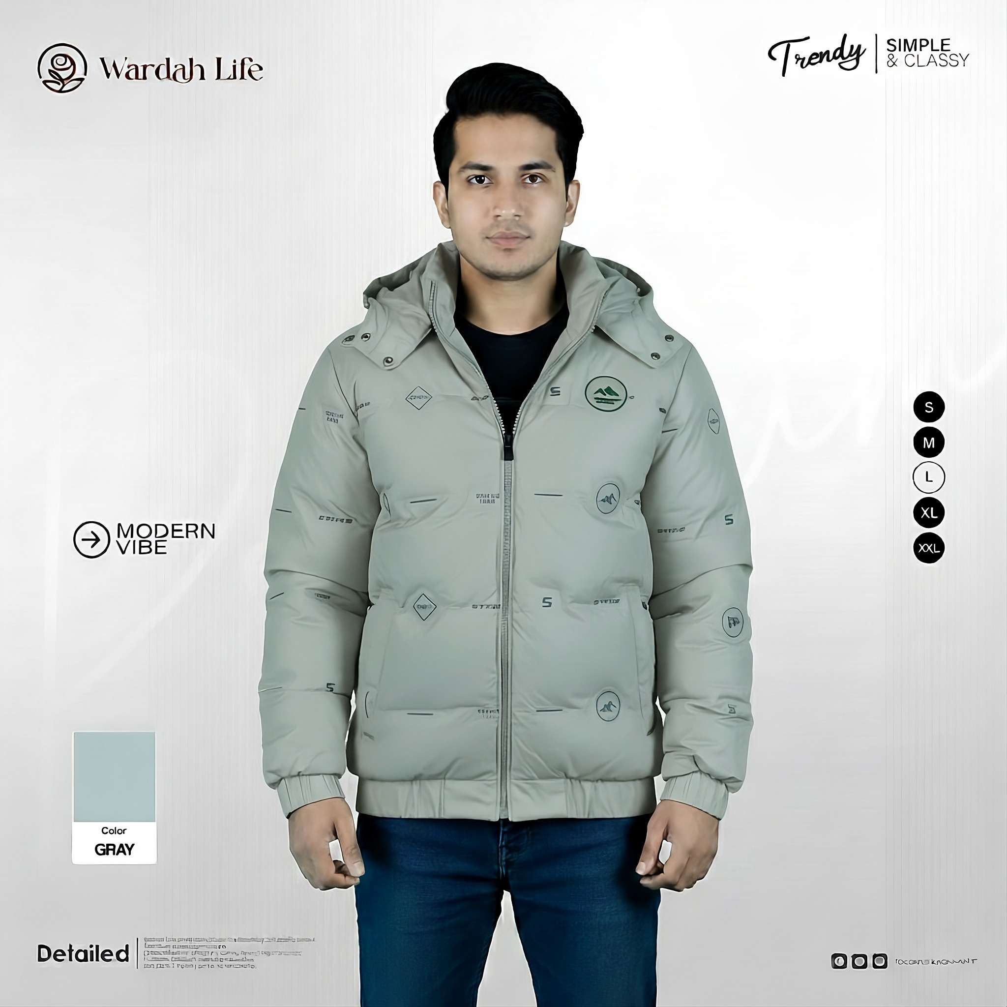 Short Description: শীতের দিনে থাকুন উষ্ণ ও স্টাইলিশ Wardah Life Minus Country Padding Jacket এর সাথে। প্রিমিয়াম মানের ইনসুলেশন, ওয়াটার-রেজিস্ট্যান্ট শেল এবং আধুনিক কাট এই জ্যাকেটটিকে করে তুলেছে সবার প্রথম পছন্দ। অফিস, ক্যাজুয়াল আউটিং কিংবা ভ্রমণ – যেকোনো জায়গায় এই জ্যাকেট আপনার লুককে করবে আরও স্মার্ট।